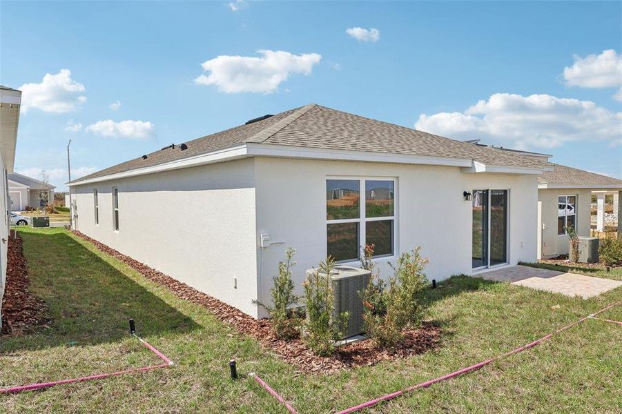 MOVE-IN READY! Beautiful Single Level, 2 Car Garage Home with Open Concept Living and 3 full Bedrooms! The Flagler plan is in the Coastal exterior design. The covered porch opens to a gracious foyer with adjacent flex space and leads to the open island kitchen with espresso cabinets and granite countertops, cafe and family room. The private garage opens to a hallway with 2 secondary bedrooms and full bathroom with dual sink vanity. The primary suite boasts a large walk-in closet and en suite bathroom that includes a shower and private water closet.