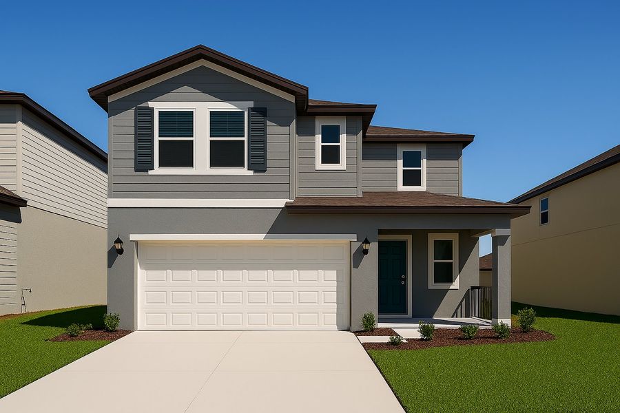 This new two-story home boasts a modern layout with an open-concept floorplan consisting of a stylish kitchen, dining room and family room on the first floor. A convenient bedroom is located toward the back of the home, perfect as a guest suite or home office. Five additional bedrooms can be found upstairs, including the luxurious owner’s suite, surrounding a versatile loft space.