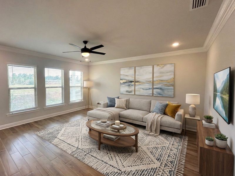 The LASALLE V A in The Bluffs at Lafayette community offers a 3 bedroom, 2 bathroom, open and split design with computer desk/niche. Upgrades for this home include wood look ceramic tile flooring throughout, upgraded kitchen backsplash, LED coach lights on each side of the garage, blinds for the windows, quartz countertops, upgraded cabinets with soft close doors and drawers, custom tiled shower with frameless door in master bath, gutters, and more! Special Features: double vanity, garden tub, separate shower, and walk-in closet in master bath, kitchen island, pantry, covered porches, undermount sinks, LED lighting throughout, crown molding, ceiling fans in living and master, custom framed mirrors in all baths, smoke and carbon monoxide detectors, landscaping, architectural 30-year shingles, flood lights, and more! Energy Efficient Features: tankless gas water heater, kitchen appliance package with gas range, vinyl low E windows, and more! Energy Star Partner.