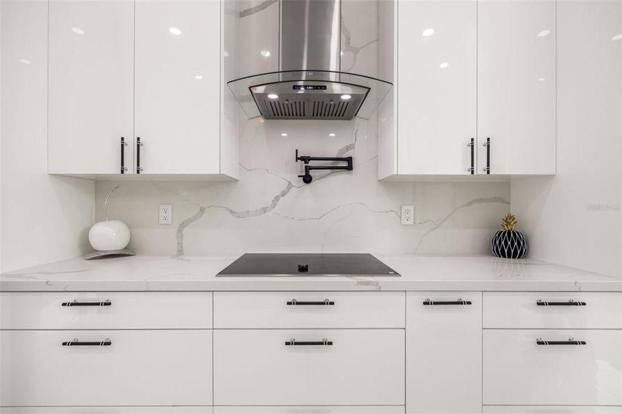 Luxury. Style. Elegance. Picturesque sunsets await from this western-exposure canal-front home. This stunning 3-bedroom, 3-bath residence delivers modern sophistication with soaring ceilings, polished tile floors, and a luminous open-concept design - perfectly blending comfort with contemporary flair. The gourmet kitchen is a true showpiece, featuring a waterfall quartz island, custom cabinetry, designer backsplash, stainless steel appliances, and Samsung built-in wall ovens with a microwave/oven combo - both compatible with the SmartThings app for connected cooking convenience. A sleek range hood with pot filler completes the space, ideal for both everyday living and effortless entertaining. Flowing into the living room, you’ll find a striking accent wall with electric fireplace and mounted TV, enhanced by custom electric blinds on the sliders for convenience and style. The owner’s suite is a private retreat with spa-style finishes, custom walk-in closets, and motorized blinds. Two additional bedrooms, including a junior master suite and a guest bath with direct pool access, provide comfort and flexibility for family or guests. Step outside to your resort-style oasis: an oversized heated saltwater pool with flush spa, sundeck, waterfall features, and plenty of room for loungers. The Pentair system with smartphone remote gives you control over lights, pumps, and water features with ease. Entertain on the screened-in lanai or covered area with modern fans, recessed lighting, a full outdoor kitchen, and a wood-slat style finished ceiling. Additional highlights include a higher elevation lot, structurally solid construction with hurricane-impact windows and doors, a freshwater canal with seawall and composite dock, tile roof, extended circular paver driveway, and an insulated garage with mini-split A/C to keep it cool year-round. With all assessments paid, this home is truly move-in ready. Every detail has been thoughtfully curated, making this residence stand out among Cape Coral’s finest. Don’t miss your chance to own this stylish, upgraded canal-front masterpiece. Schedule your private showing today - this one will wow you!