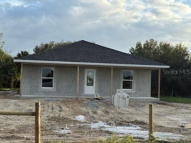 A true must-see—this home surprises with a bright, open interior offering far more space than expected. This brand-new CBS construction is thoughtfully designed for both comfort and functionality, featuring 3 bedrooms, 2 bathrooms, and 1,802 total square feet. The layout includes extra-large bedrooms, generous closet space, a comfortable living room, and an eat-in kitchen with a dedicated dining area—perfect for everyday living and entertaining. Situated on a fully fenced 1.25-acre lot just off a paved road, the property offers peaceful country living with modern convenience. A serene pond enhances the setting, while the expansive acreage provides plenty of room for a barn, workshop, or garage—ideal for animals, RVs, boats, and equipment. Inside, you’ll find all-new appliances, durable laminate flooring throughout, and beautifully tiled bathrooms, making this home truly move-in ready. Enjoy sunrise views from the large front porch Conveniently located just minutes from Pierce, I-95, and the Florida Turnpike, this property offers the perfect balance of privacy and accessibility. Expected to be completed in 2 weeks, this is a rare opportunity to own new construction on acreage with room to grow.