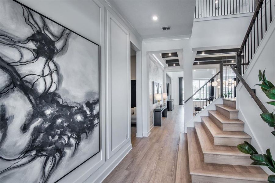 Additional upgrades and features include LED downlights in the gathering room, upgraded lighting and hardware and a Smart Home technology package with a video doorbell.