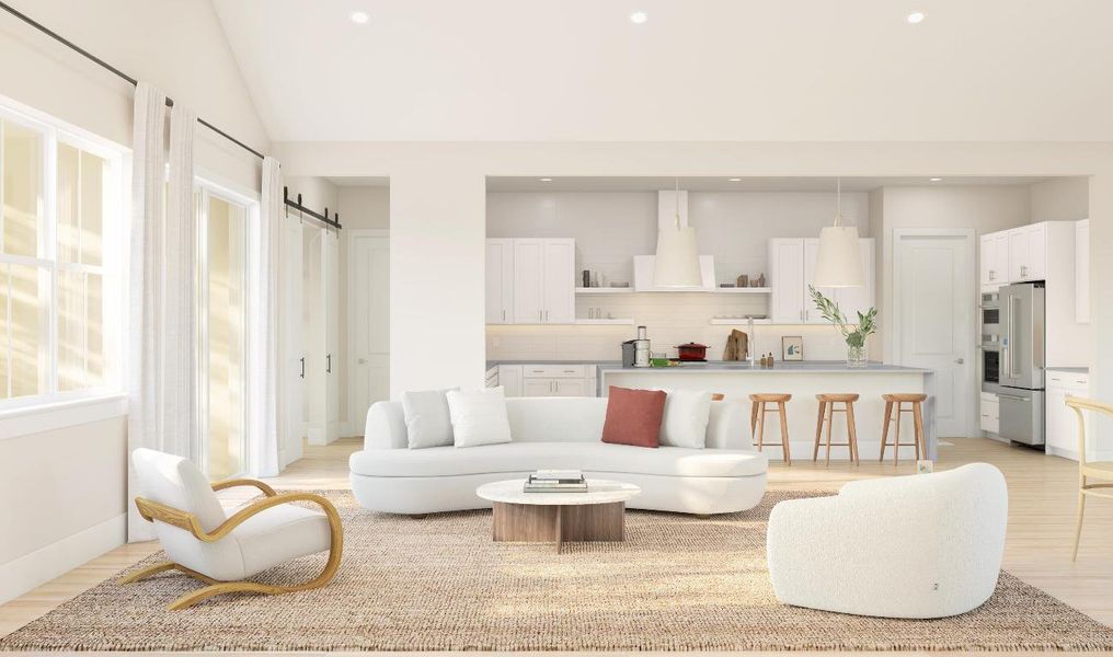 This Franklin offers an exceptional blend of sophistication and modern comfort. A formal dining room provides a polished setting for gatherings, flowing effortlessly into the great room and dining area, both enhanced by a shared vaulted ceiling for an open, airy ambiance.