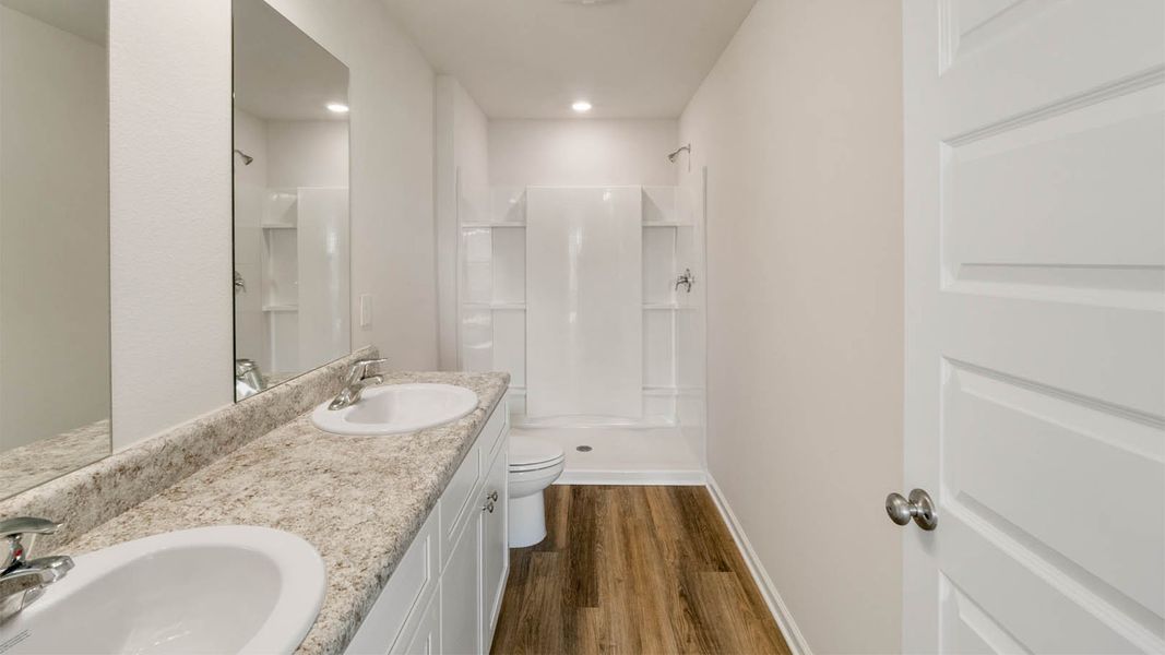 As you enter this 3 bedroom, 2 bath home, you will see 1,293 square feet of spacious, comfortable living. Inside you will see 8' ceilings throughout, engineered vinyl plank flooring throughout the main areas, and soft carpet in the bedrooms. Granite countertops, white cabinetry and a spacious open living room and kitchen make this home perfect for having guests over. The kitchen has a center island that is perfect for serving children and guests, a pantry, white cabinets with soft-close and stainless-steel appliances including a smooth top range, microwave, and dishwasher. Located right next to the dining area, this makes serving meals with ease. The primary bedroom has a spacious walk-in closet and large windows at the front of your home. The primary bathroom features a double vanity with granite countertops, white cabinets with soft-close, and a shower. The guest bathroom features a single vanity with granite countertops and a shower. Like every home in Liberty, this home comes with Smart-Home technology, using modern advancements to control your new home with ease.