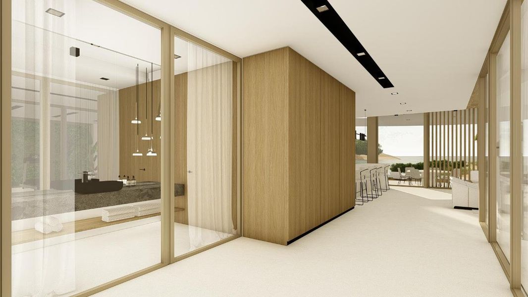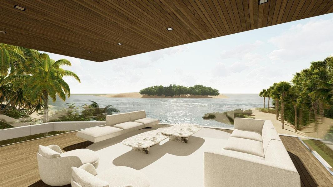 This organic modern jewel on a walled and gated lot along Billionaire's Beach takes privacy, security and world-class amenities to a whole new level. Three of them, in fact. The ultimate beach house (now under construction and slated for completion in the spring of 2026), new Villa Tropezina is being masterfully developed by Sabal Development and artfully crafted by Sabal Luxury Builders, both under the direction of Pascal Nicolai. It was beautifully designed by Togu Design. Ensconced on a lush linear sloping lot that extends from a pristine Atlantic Ocean Beach to a secluded Intracoastal inlet, this fluid, light-infused, three-story smarthouse juxtaposes organic finishes and creamy natural tones with modern design to create a zen-like serenity. From its water garden side entry and floor-to-ceiling sliders to its tiered water-view terraces and the Saint Tropez vibe of its beach-side cabana, this estate skillfully complements its island environ, while seductively blurring the line between indoor/outdoor living.