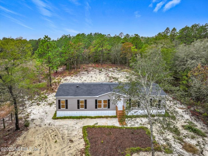 This brand new 4/2 manufactured home features 1,560 sq ft of living space and is situated on a private 1.5 acre lot, on a paved county-maintained road. The home offers a split floorplan for comfort and convenience, with vinyl flooring throughout. The kitchen boasts a bright, modern design with white cabinetry, black appliances, and abundant storage. Each of the four spacious bedrooms feature ample closet space, including walk-in closets in most. EVERYTHING IS BRAND NEW- home, roof, central AC, well, septic system, appliances; you name it! This one is truly a must see, at an amazing price!