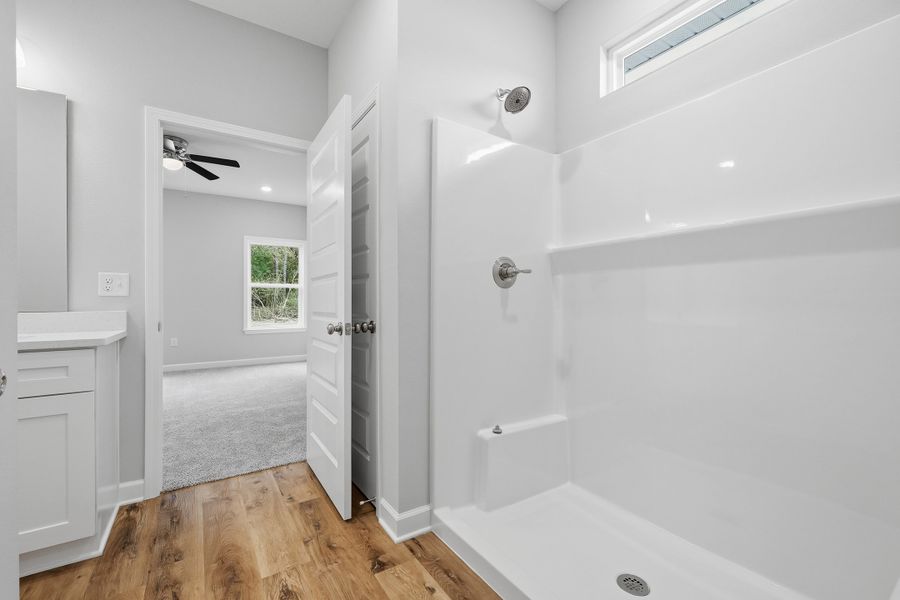 6104 Mildred’s Way features the popular 1,823 sq ft Sierra floor plan by CJL Homes, offering a spacious open-concept layout designed for comfortable Northwest Florida living. This beautifully crafted new construction home includes a large kitchen with quartz countertops, stainless steel appliances, soft-close cabinetry, and an oversized island perfect for cooking, gathering, and entertaining. The split-bedroom layout provides added privacy, with a generous primary suite featuring a tiled walk-in shower and a double-sink vanity.