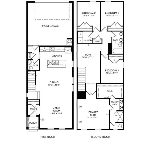 The open first floor boasts a spacious great room and dining area that flow seamlessly together. The upstairs primary suite features an oversized walk-in closet, dual sinks, and a standing shower.