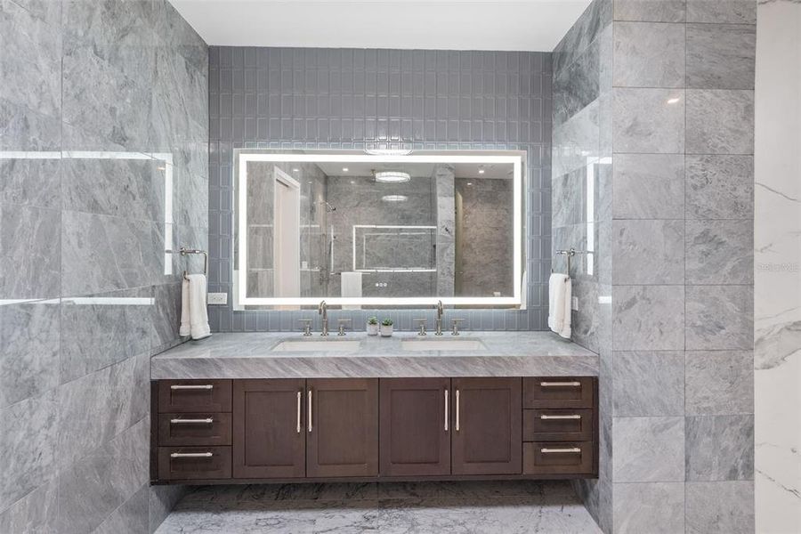 Welcome to the pinnacle of elegance and sophistication at the RITZ-CARLTON RESIDENCES TAMPA, soaring above Bayshore Boulevard. This exquisite 20TH FLOOR RESIDENCE offers a lifestyle defined by luxury and legendary service, set against the backdrop of breathtaking views and world-class amenities. Featuring floor-to-ceiling windows and 10' CEILINGS, this residence is designed for comfort and convenience. THE PRIMARY BEDROOM WAS MODIFIED TO BE ENLARGED FROM THE ORIGINAL FLOOR PLAN for a larger owners retreat! TWO LARGE SPACIOUS TERRACES provide unparalleled views: one overlooking the serene waters of Hillsborough Bay and the vibrant downtown Tampa skyline, and the other offering vistas that stretch for miles, ideal for enjoying stunning SUNRISES AND SUNSETS and panoramic landscapes. The gourmet kitchen is equipped with top-of-the-line WOLFE and SUB-ZERO appliances, wine refrigerator and upgraded hood vent exhaust to the exterior of the building. The home features a spacious private foyer, accessed directly from your private elevator, offering the opportunity to personalize and furnish the space to your taste. Residents will enjoy 24/7 PERSONALIZED CONCIERGE AND VALET SERVICES, plus round-the-clock security personnel. The large amenity deck is a haven for relaxation and recreation, boasting a sparkling swimming pool, a rejuvenating spa and a tennis-court. Fitness enthusiasts will appreciate the state-of-the-art fitness center and studio, complete with steam rooms and saunas, as well as treatment room for on-demand spa services for ultimate wellness. Families will find plenty of activities for all ages, including a dedicated indoor playroom and a golf simulator for virtual play. Wine connoisseurs can relax in the wine room, while culinary enthusiasts can host and entertain in the professional demo kitchen which also serves continental breakfast. The in-house Drift Bay Kitchen & Pool Bar can be utilized to order food & drinks to your residence and the pool area. Additional amenities include social rooms, large boardroom, 2 guest suites, additional pool deck on the Bayshore Patio, and a landscaped dog park and dog washing station for pet lovers! TWO designated parking spots in the SECURED PARKING GARAGE including one for ELECTRIC VEHICLES and close to main entrance!! This home has over $200,000 in upgrades including recessed and lighted cove ceilings in the living room and recessed lighting in the primary bedroom—creating a warm, ambient glow ideal for elegant evenings. All bedrooms, kitchen, and the linen closet have been outfitted with custom-designed closets for refined organization. Sleek, electric remote-controlled blinds have been installed in every room, offering effortless privacy and light control at the touch of a button. Embrace a lifestyle of luxury and sophistication at this exceptional Ritz-Carlton residence, where elegance and service converge to create an unparalleled living experience in the heart of Tampa.
