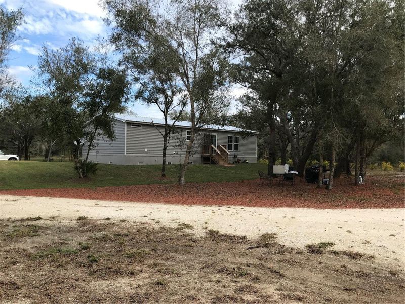 “LITTLE HOUSE ON THE PRAIRIE” This 2024 TURN KEY 3 bedroom / 2 full bath 1456 sq foot home is sitting peacefully on 1.25 acres of nature. The home features an open concept layout with spacious living area along with a 3 bedroom split. Huge kitchen island, stainless steel appliances, ceiling fans and laminate floors throughout, crown molding and a Metal Roof are just some of the many upgrades. Step outside to the beautiful property with mature Oaks and palm trees planted as a barrier to the already completely fenced yard. 20 X 30 carport along with serene fully stocked pond that adds a picturesque touch, ideal for watching the relaxing sunrise, sunsets and wonderful wildlife. Don’t forget your ATV to join the fun. Call for your appointment today. All measurements are approximate.