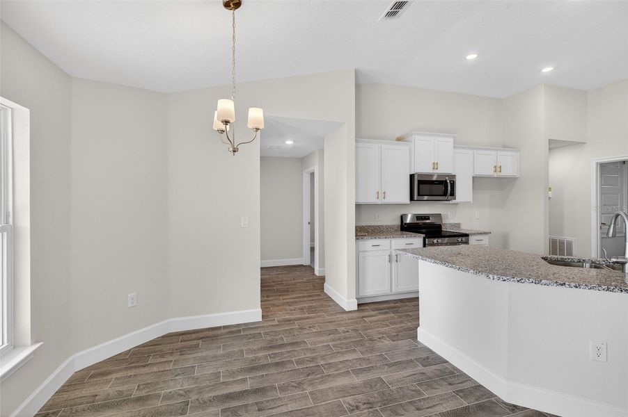 Step inside to an open, spacious layout with ceramic tile in main areas, plush carpeted bedrooms, vaulted ceilings, and beautiful backyard views. The modern kitchen features snow soft-close cabinetry, granite countertops, a deep drawer bank, trash/recycle pullout, pantry, breakfast nook, and generous countertop space perfect for everyday living and entertaining. The owner’s suite includes dual walk-in closets, a tiled shower, and relaxing garden tub. All bathrooms are equipped with matching granite and soft-close cabinetry. Exterior features include 42" stone accents, lush landscaping, full yard irrigation, and a 3-car side-entry garage with top-row windows and separate openers. Additional upgrades include 5¼" baseboards, double-pane low-E windows, a 50-gallon water heater, modern 5-panel doors, and a large covered lanai ideal for outdoor dining or a future pool. NO CDD and NO flood zone. Enjoy estate-style privacy with the convenience of Dade City’s charming shops, restaurants, and annual events just minutes away. Interested in seeing the quality and layout firsthand? Visit the Adams Homes model home at Abbey Glen to find out more information. Ready to move now and start living the lifestyle you’ve been waiting for! Interested in seeing the quality and layout firsthand? Visit the Adams Homes model home at Hill Country Estates to explore this floorplan in person. Model Address: 37423 Hidden View Circle, Dade City, FL 33523