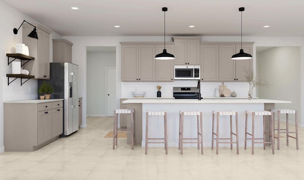 42-inch white cabinets and elegant white quartz countertops in the kitchen, perfect for cooking and entertaining