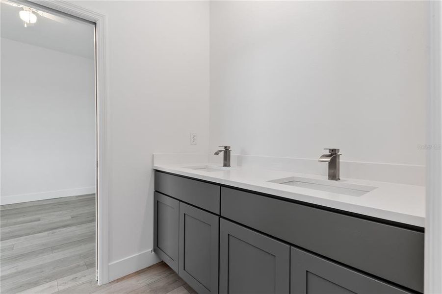 MOVE-IN READY! This brand-new, custom-built home showcases modern elegance from the moment you arrive, highlighted by a paver driveway and walkway. Located in desirable South Gulf Cove, this 4-bedroom, 3-bath residence is thoughtfully designed for today’s Florida lifestyle and built with hurricane-impact windows and doors for year-round peace of mind. Inside, 10' ceilings and a spacious open-concept floor plan seamlessly connect the kitchen, living, and dining areas—perfect for everyday living and entertaining. The stunning kitchen features stainless steel appliances, a stylish tile backsplash, elegant pendant lighting, and a massive waterfall-edge quartz island with ample storage. The expansive primary suite offers a private retreat with a large walk-in closet and a bath featuring dual vanities, quartz countertops, and a large walk-in beautifully tiled shower and private water closet. Two additional bedrooms share a convenient Jack-and-Jill bathroom, while the fourth bedroom includes its own full bath with direct access to the lanai—ideal for guests or future pool use. Sliding glass doors open to a covered lanai prepped for an outdoor kitchen, complete with summer kitchen hookups—perfect for indoor-outdoor living. Additional highlights include a flexible layout, quality finishes throughout, and thoughtful attention to detail. This home is Ideally located just minutes from golf courses, beaches, marinas, world-class fishing, and endless water adventures. South Gulf Cove offers two public boat ramps, five parks, and a golf-cart-friendly community atmosphere, making it a premier destination for outdoor living and coastal adventure. Call today to schedule your private tour! *** One or more photo(s) has been virtually staged. ***