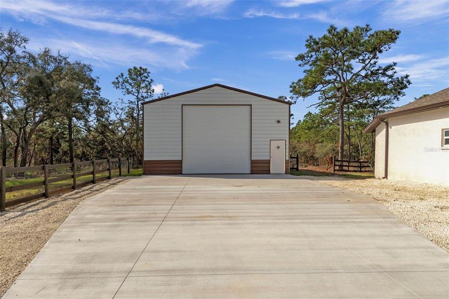 The impressive 1,500 sq. ft. fully insulated workshop is tall enough to accommodate a large RV and stays up to 20 degrees cooler than outside temperatures in the summer. It features two 14’ x 14’ roll-up doors, 30-amp RV service, and endless potential as a garage, man cave, or hobby space.