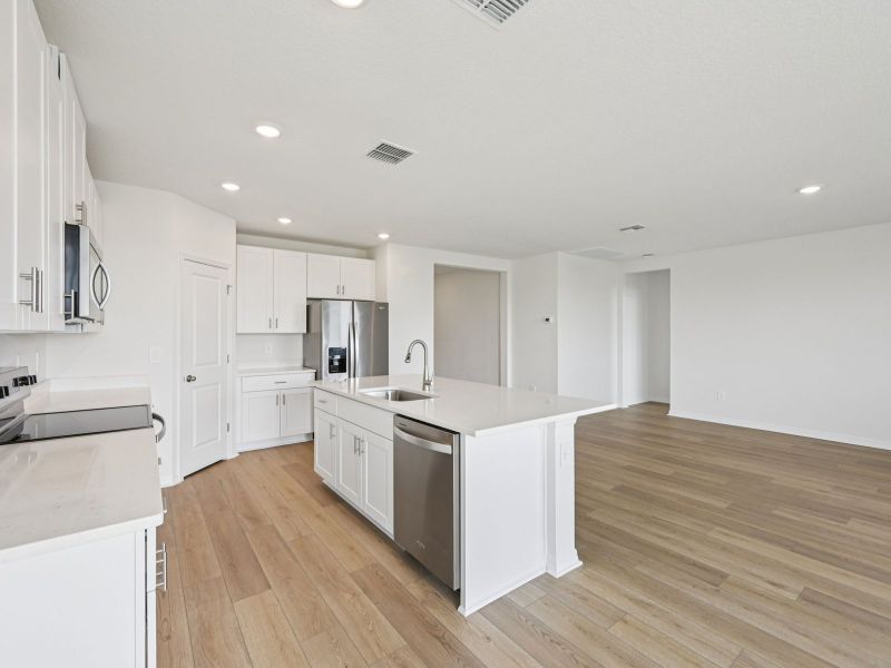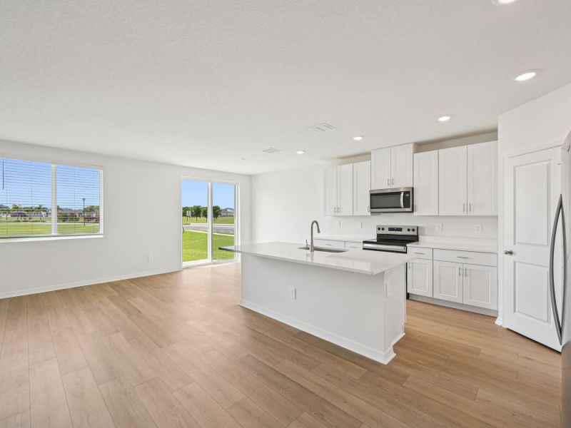 The Hibiscus floorplan blends style and function with 4 bedrooms, 3 bathrooms, and a 2-car garage. Its open-concept design centers around a sleek kitchen that flows effortlessly into a spacious great room, perfect for gatherings or everyday living.