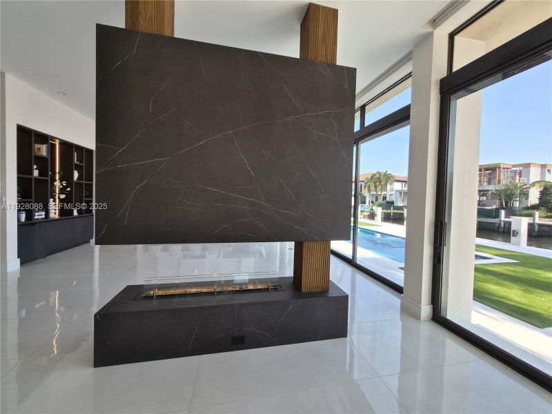 Step inside to soaring 12-foot ceilings, open living areas, and a sleek contemporary layout filled with natural light. Impact glass pocket doors disappear, creating a dramatic indoor–outdoor flow to the waterfront terrace. The chef’s kitchen is a showpiece, featuring Sub-Zero and Wolf appliances, custom cabinetry, and an exquisite sculptural island that anchors the home’s sophisticated entertaining spaces.