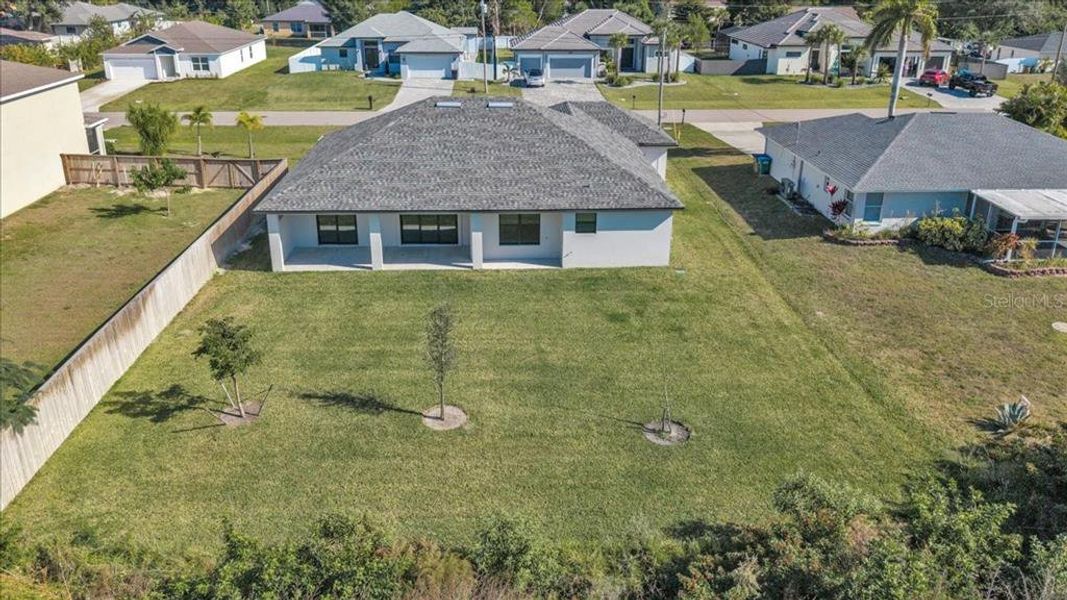 The seller is offering a $10,000 credit toward buyer closing costs, adding exceptional value and flexibility. Discover this brand-new, beautifully crafted home with city water and sewer, located in a non-flood zone for added peace of mind. Designed with hurricane-impact windows and doors, this residence blends safety, quality, and modern coastal style. The inviting single-story layout features a clean, contemporary exterior, a spacious three-car garage, and a wide paver driveway, offering excellent curb appeal. Large windows fill the home with natural light, while a covered entryway creates a welcoming first impression. The thoughtfully designed split-bedroom floor plan includes three spacious bedrooms, a large den, and two full bathrooms. At the heart of the home, the gourmet kitchen impresses with a granite-topped island, subway tile backsplash, stainless steel appliances, pantry closet, and white shaker soft-close cabinetry—creating a bright, elegant space for cooking and entertaining. The open-concept living area features a soaring 12-foot tray ceiling and flows seamlessly into a dining or breakfast nook, perfect for everyday living and gatherings. Luxury plank flooring extends throughout, and a large sliding glass door opens to the covered lanai, ideal for enjoying the Southwest Florida lifestyle. The guest wing includes two bedrooms and a full bathroom with direct lanai access—perfect for future pool plans. The primary suite is a private retreat, complete with a tray ceiling, sliding doors to the lanai, dual walk-in closets, and a spa-inspired en-suite bath featuring a walk-in shower, garden soaking tub, dual vanities, shaker cabinetry, and a private water closet. Outside, the spacious covered lanai provides an inviting setting for relaxing or entertaining. Situated in a highly desirable neighborhood with no HOA fees, this home offers flexibility to live or rent without restrictions. Conveniently located just minutes from fine dining, boutique shopping, grocery stores, medical facilities, parks, and marinas—and a short drive to Sanibel, Captiva, and Fort Myers Beach—this home delivers the best of Southwest Florida living right at your doorstep. PLEASE ENJOY THE 3D INTERACTIVE VIRTUAL TOUR ASSOCIATED WITH THIS LISTING