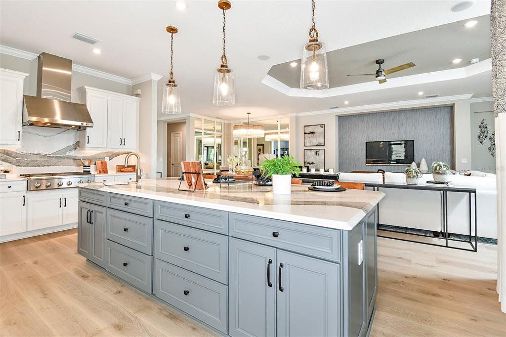 What's Special: Conservation View | No Rear Neighbors | Backs to Wetland | Single Level Living | Popular Plan. New Construction – Ready Now! Built by Taylor Morrison, America's Most Trusted Homebuilder. Welcome to the Pallazio at 10221 Silent Night Lane in Esplanade at Skye Ranch! This thoughtfully designed home offers generous space and elegant details throughout. Inside, you’ll find four bedrooms plus a flexible room that adapts to your lifestyle. The heart of the home is the open gathering room, kitchen, and dining area—perfect for entertaining or relaxing after a busy day. The kitchen features a large island and a step-in pantry for easy storage. The private primary suite is tucked away at the back, complete with a spacious bedroom, luxurious bath, and oversized walk-in closet. Guests will feel right at home with three additional bedrooms, including one with its own full bath. Sliding glass doors open to an expansive lanai with an outdoor kitchen rough-in, creating an ideal space for outdoor living. Additional Highlights include: added 4th bedroom, outdoor kitchen rough-in, 8' interior door upgrade throughout and impact windows throughout. MLS#A4677379
