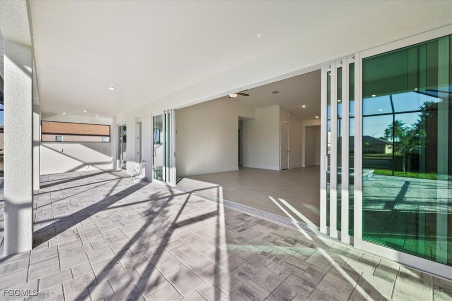Two primary suites provide privacy and flexibility, with one including a convenient pool bath for guests or multi-generational living. Bedrooms feature 9’4” ceilings, while the main living areas have tall ceilings that enhance the sense of space. A three-car garage, energy-efficient construction, and hurricane-resistant impact windows and doors add both luxury and peace of mind.