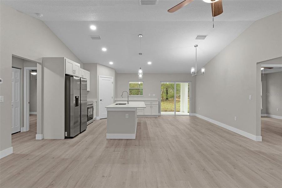 Tucked away in the peaceful charm of Ocklawaha, this enchanting 3-bedroom, 2-bath home welcomes you the moment you arrive. High ceilings and soft recessed lighting create an airy, open atmosphere, while luxury vinyl plank flooring flows seamlessly throughout, tying every space together with modern elegance.