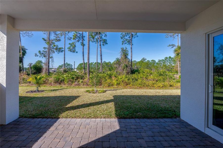 Flowing seamlessly into the dining area and sunlit living room, this main living space opens through oversized sliding glass doors to a covered patio - ready for your outdoor kitchen, overlooking the backyard and wooded preserve perfect for relaxing or entertaining. The first-floor primary suite is a serene retreat with tray ceilings, and a luxurious spa-like en-suite bath featuring two separate vanities, a huge frameless glass walk-in shower with double shower heads, and an expansive walk-in closet with custom built-ins. Three additional bedrooms offer comfortable accommodations, including a private guest suite with its own en-suite bath. A versatile loft upstairs provides space for a second living area, media room, or playroom, while a dedicated office at the front of the home offers a quiet space to work or unwind. Additional highlights include a 3-car garage, thoughtfully designed laundry room, and proximity to the community's pool and clubhouse amenities - all within walking distance. Various memberships to world class golf and additional amenities are available for an additional fee. Conveniently located near Daytona International Speedway, Tanger Outlets, scenic golf courses, and walking trails, this home blends modern comfort with resort-style living in a peaceful, natural setting. All information recorded in the MLS is intended to be accurate but cannot be guaranteed.