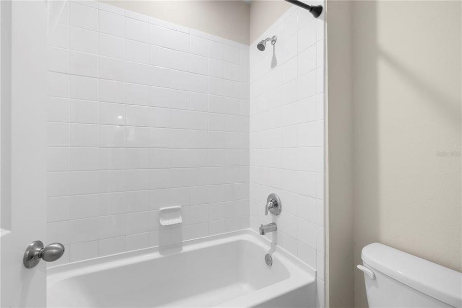 The first floor welcomes you with a long, elegant foyer that leads to a private office enclosed by glass French doors, ideal for working from home or a quiet study. Just beyond, the open-concept kitchen features a breakfast bar, granite countertops, stainless steel appliances, 42-inch staggered cabinets with crown molding, and a large pantry with a dedicated coffee bar. The kitchen flows seamlessly into the dining area and spacious living room, where large windows and glass sliding doors flood the space with natural light and open to the covered lanai. Also on the first floor is a full bedroom and bathroom, perfect for guests, multigenerational living, or a teen suite. The home features 9’4” ceilings on the first floor, granite countertops throughout, shower wall tile, and all-concrete block construction on both the first and second stories for durability and energy efficiency. Upstairs, a generous landing doubles as a second family room and includes a walk-in closet for added storage. Three secondary bedrooms share a well-designed full bathroom with a double-sink vanity and a separate shower and toilet area. The primary suite offers peaceful views and includes a spacious walk-in closet and an en suite bathroom with a separate garden soaking tub and walk-in shower. The laundry room is conveniently located on the second floor. Outside, triple glass sliding doors lead to a roof-covered lanai that is ready to be screened in, providing shaded outdoor living year-round. The backyard stretches out to serene views and features a paved fire pit area, making it ideal for relaxing evenings and entertaining. Residents of Epperson enjoy access to the iconic Epperson Lagoon, the first Crystal Lagoon® in the United States. This resort-style amenity spans 7 acres of crystal-clear water with sandy beaches, cabanas, water slides, swim-up bars, paddleboarding, live music, and community events throughout the year. Additional amenities include playgrounds, walking trails, dog parks, an outdoor fitness area, and golf cart-friendly streets. This home offers the perfect blend of modern design, thoughtful upgrades, and a true vacation-style lifestyle where every day feels like a getaway.