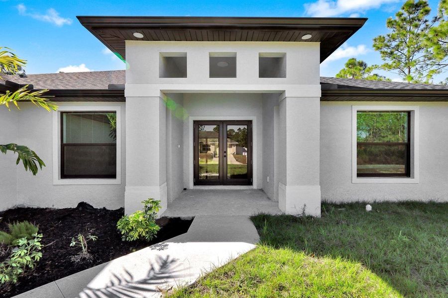 4 bedroom 3 bath 3 CAR Garage HALF ACRE new construction home in Lehigh Acres Florida. Sabal Palm Plus floor plan offers plenty of space for the whole family. The separate dinning and living rooms can also be used as flex spaces. The vaulted ceilings, hurricane rated windows and doors and extra large garage on this half acre lot set this home apart from the others. Primary bedroom is 14 X 17 and has two walk in closets the bathroom has separate tub and shower and two sinks. A split floor plan offers 2 bedrooms that share a bathroom and another bedroom with it's own full bathroom with a door to the lanai. Great room is ready for a large TV with a wood feature accent wall. Kitchen has all stainless appliances, a large granite island and a nice sized dinning1 year warranty.