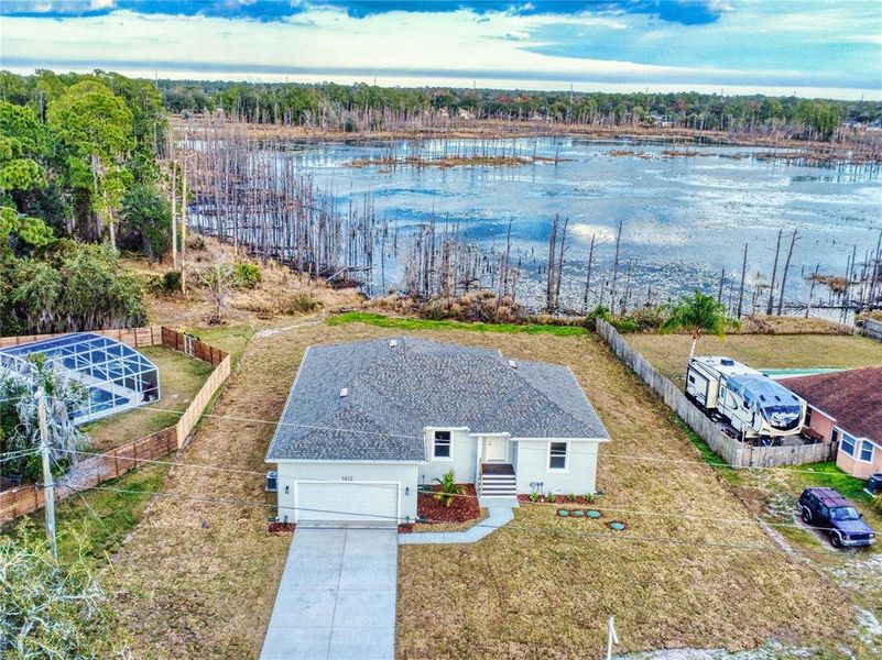 This stunning Lake Front, 3-bedroom, 2-bath NEW CONSTRUCTION home showcases beautiful upgrades throughout and a thoughtfully designed open-concept floor plan, perfect for both everyday living and entertaining. The spacious primary suite offers a private retreat with a well-appointed en-suite bath. Step outside to a large back porch overlooking serene Lake Clara, ideal for relaxing, dining, or hosting gatherings. Enjoy fishing and kayaking from the privacy of your own backyard, embracing true waterfront living. Offering peace of mind with a FEMA-approved house and the flexibility of a large parcel with ample space for RV and boat storage, this property has no HOA restrictions. A true blend of modern comfort, functionality, and freedom.