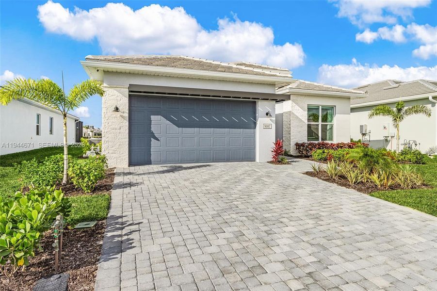 Welcome to this gorgeous Pinellas model waterfront home at Seven Shores in desirable Naples, FL. This brand new, never-lived-in, open-concept home offers 4 bedrooms, 3 baths, soaring 12-foot ceilings in the great room, and an amazing chef’s kitchen, all built to the highest standards with impact-resistant windows and doors. Featuring over $245,000 in upgrades, this showroom-quality home includes luxury finishes throughout, alternate island configuration and upgraded cabinetry in the kitchen, gold-sparkled quartz countertops and designer tile backsplashes and premium upgraded porcelain flooring throughout. The master bathroom includes a beautiful free standing tub, an oversized shower, and shower tiles extending to the full height of the walls. Enhanced lighting with multiple additional recessed fixtures, top-of-the-line Jenn Air appliances, high quality motorized window treatments, multi-slide doors in the living room leading to a spacious patio, an extended covered lanai with a full-height privacy wall, an outdoor kitchen prep package, epoxy-coated garage flooring, gutters throughout, and stunning west-facing water views with breathtaking sunsets. This home is located on a premium, elevated lake view lot, in a rare natural gas and no-flood-insurance community. Seven Shores offers resort-style amenities including an amazing clubhouse, resort style pool, fitness center, pickleball and tennis courts. This home is move-in ready and designed for the ultimate Naples lifestyle.