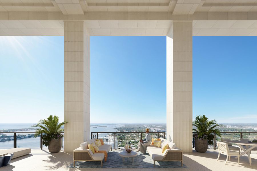 Exceptional, 1 of 2, South Flagler House Duplex PH. This PH set atop the South Tower, is 1 of 1 as each Duplex PH is unique in its design. The south duplex spans the 27th & 28th floors with sweeping views of the Intracoastal, Palm Beach, & the Atlantic Ocean. Offering 7 BRs, 8 full BAs, & 2 powder rooms, this panoramic residence features 13,904 sq ft of interior space & an additional 1,941 sq ft of covered outdoor entertaining space. A private elevator vestibule opens to a grand foyer & into living/entertaining spaces across each floor with exceptional water views. Myriad spaces including KT, DR, family/media rooms, offices, as well as a private interior elevator & interior gracious stair complete the home. SFH includes the most luxurious & robust amenity offerings in WPB & PB. South Flagler House, presented by Related Ross, combines the timeless style of Robert A.M. Stern Architects & the luxurious aesthetic of Pembrooke & Ives, resulting in soulful spaces designed for an enhanced lifestyle. Primely positioned on 3.4 acres along the Intracoastal Waterway at 1355 S Flagler Dr. South Flagler House features two 28-story structures with 105 beautifully appointed 2-to-5-bedroom homes. Representing the single largest amenity offering per residence in all of Palm Beach County. Residents will have access to lifestyle amenities of unprecedented range & quality, with on-site concierge services surpassing those of the most exclusive private members' clubs.