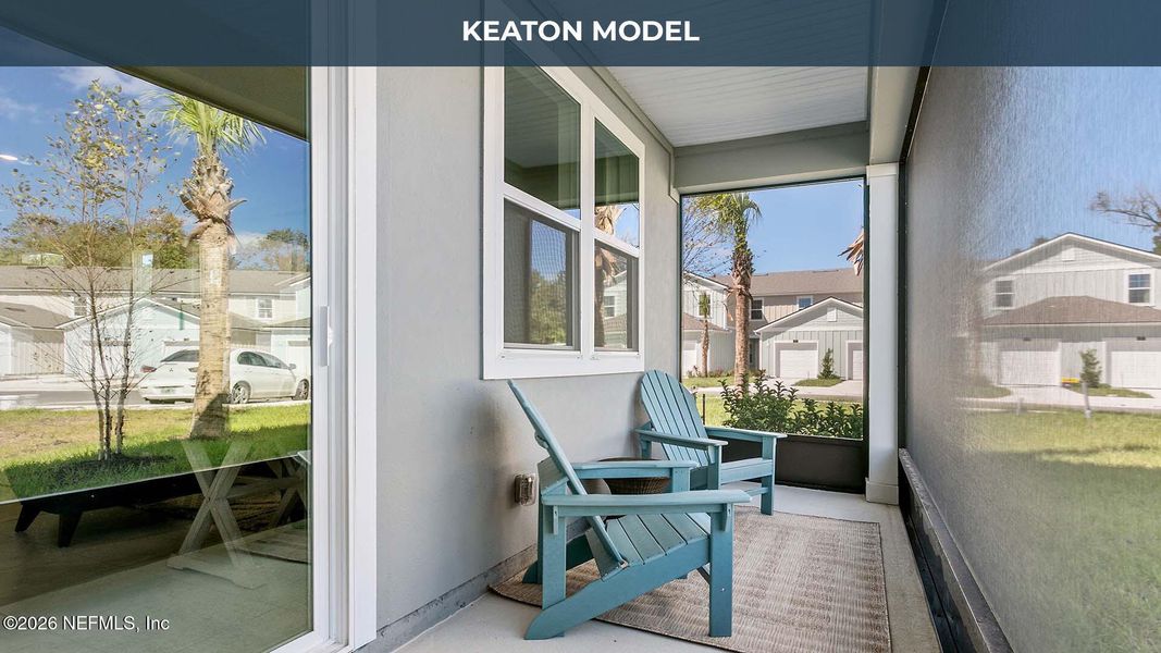 On the main level, enjoy an open-concept design that seamlessly connects the large family room, casual dining area, and contemporary kitchen. The Keaton's layout provides the perfect space for entertaining or simply relaxing at home. Just off the main living area, a screened-in lanai provides an ideal outdoor retreat where you can enjoy fresh air and privacy all year long. Upstairs, the oversized main suite offers a peaceful escape with ample closet space and a private bath. Two additional bedrooms provide flexibility for guests, a home office, or growing families.