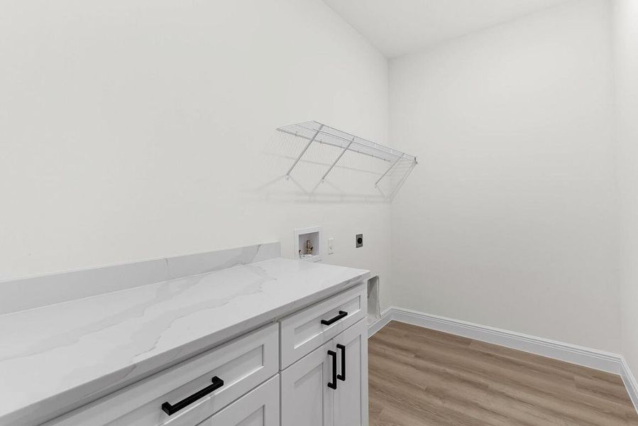 Spa-style bathrooms feature wall-to-wall designer tile, sleek black fixtures, and a stunning custom walk-in shower that rivals a boutique hotel. The thoughtfully designed laundry room includes built-in cabinetry and a quartz folding counter, adding beauty to everyday living.