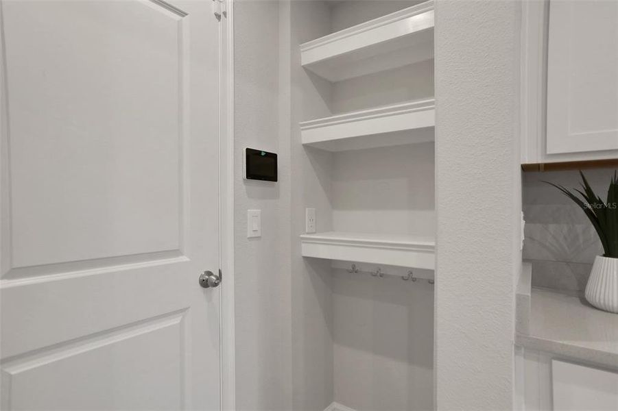 The oversized one-car garage offers room for both parking & storage and is pre-wired for EV or Tesla charging. Smart home technology with security system and doorbell camera is also included. Pest tubes in the wall make for clean & efficient pest control.