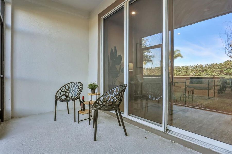 The dual-sided kitchen is where this townhome truly sets itself apart, offering generous white 42-inch upper cabinets with crown molding, quartz countertops, island seating, a single-bowl undermount sink, stainless steel appliances, pull-out trash, and a walk-in pantry tucked under the stairs for exceptional storage. Plus, a built-in drop zone adds convenience at the garage entry. The dining area flows seamlessly into the family room and features a designer light fixture and ample space for a large table. Anchored by 8-ft tall sliding glass doors, the family room offers both a comfortable space to relax as well as an easy connection to the covered and screened patio.