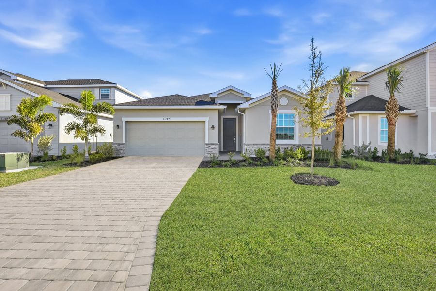 This single-story home offers versatile living, with an open design among the dining room, kitchen and family room, which lead to a covered lanai for outdoor experiences. Surrounding the space are all four bedrooms, including the lavish owner’s suite with an adjoining bathroom and a large walk-in closet. A versatile two-car garage completes the home.