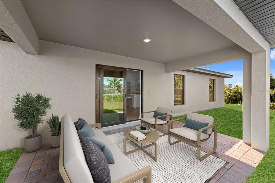 NEW CONSTRUCTION WITH WARRANTY! Estimated delivery May 2026. The Cayo Costa combines open-concept living with a smart split-bedroom layout, offering three bedrooms plus a den and two bathrooms. Perfectly designed for entertaining, the main living area showcases a soaring vaulted ceiling that seamlessly connects the kitchen, dining area, and expansive Great Room. A large freestanding island provides the ideal centerpiece for both casual meals and social gatherings, while sliding glass doors extend the living space to a covered lanai for effortless indoor-outdoor living. The private Primary Suite is a true retreat, featuring two spacious walk-in closets and a well-appointed en-suite bathroom. On the opposite side of the home, two comfortable guest bedrooms share a full bath, ensuring both privacy and convenience. A versatile den with French doors offers the perfect space for a home office, study, or creative flex room. Highlights of the Cayo Costa include: Quartz countertops in kitchen and baths, designer cabinetry with soft-close doors, stainless steel kitchen appliance package, upgraded plank tile flooring in main living areas, hurricane-impact windows and doors, attached 2-car garage with direct laundry access, and more! Pictures, renderings, & virtual tour are of similar home & are used for display purposes only.