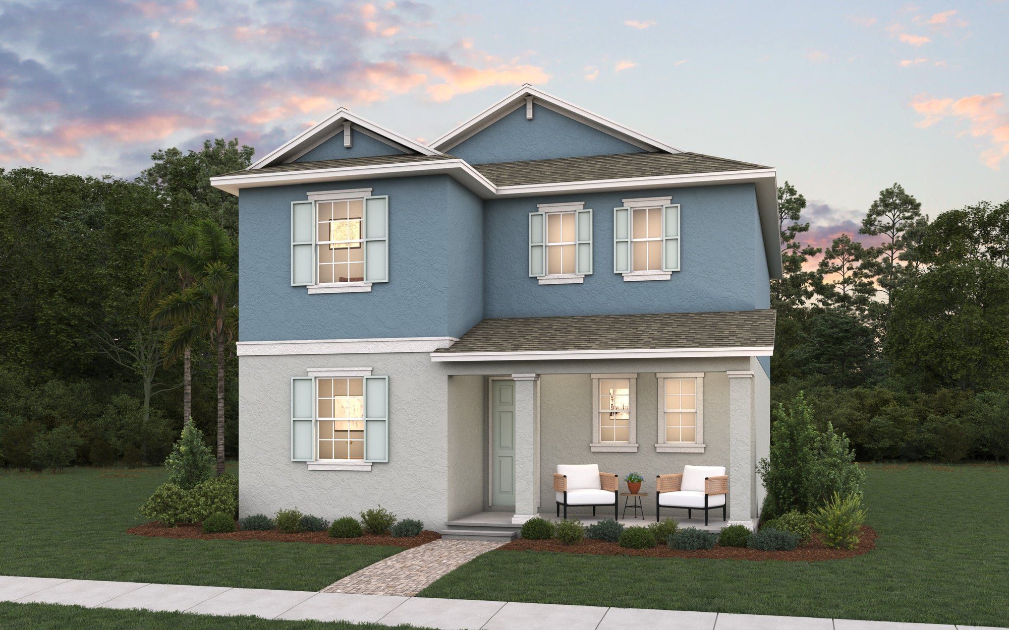 The Carter offers a well-designed living space with 3 bedrooms, 3.5 baths, and a 2-car garage. The open-concept layout features a spacious family room, a gourmet kitchen with a large island and pantry, and a dining area. The primary suite includes a luxurious bath and walk-in closet, while additional bedrooms provide comfort and privacy. An optional above-garage apartment adds flexibility, perfect for guests or rental income. Other highlights include a covered lanai and a functional laundry room, blending style with practicality.
