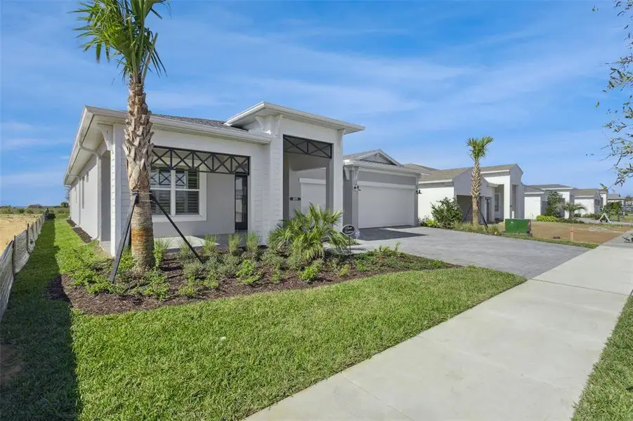 Welcome to effortless Florida living in this stunning, brand-new 3-bedroom, 3-bath home located in the highly sought-after Cresswind 55+ gated community-where evenings end with glowing sunsets and tranquil lake views in the distance. Never lived in and thoughtfully upgraded, this popular Pearl floor plan offers the perfect blend of coastal elegance, comfort, and connection to nature. Designed with flexibility and lifestyle in mind, the home features a private mother-in-law suite, an extended primary suite, and an extended lanai—ideal for unwinding at the end of the day as the sky turns shades of gold and pink. The extended front porch adds timeless charm and invites morning coffee, while the backyard becomes your personal sunset retreat. Inside, you’ll find hardwood flooring, high-end finishes, quartz countertops, an upgraded kitchen backsplash, and cabinetry that extends to the ceiling. Top-of-the-line appliances and an upgraded electrical system elevate both form and function. Hurricane-impact windows, a spray-foam insulated attic, and an extended sliding glass door fill the living space with natural light while enhancing energy efficiency and peace of mind. The home has been pre-plumbed for a water softener, generator, and outdoor kitchen—making it easy to customize your outdoor living space for sunset dinners and entertaining. The garage is equally impressive with a professionally epoxied floor and a newly installed garage door opener. Coastal design elements pair beautifully with Florida-perfect landscaping and swaying palm trees, creating a relaxed, resort-inspired atmosphere. Fiber-optic internet and TV are included in the HOA, along with individual lawn maintenance. Irrigation is provided with reclaimed water. Once the community is fully complete, Cresswind delivers a true resort lifestyle with a full-time lifestyle director, state-of-the-art fitness center, group fitness studio, presentation kitchen, arts and crafts room, card room, billiards, and inviting indoor and outdoor social spaces. Residents will enjoy a resort-style pool and spa, food truck events, lighted pickleball, tennis, and bocce courts, plus a community dock for fishing, observation, kayak launch, and boat slips. This is more than a home—it’s a lifestyle where days are active, nights are peaceful, and sunsets become part of your daily ritual. A rare opportunity to own a never-lived-in, highly upgraded home in one of the area’s most desirable 55+ communities. Call today for a private tour!!