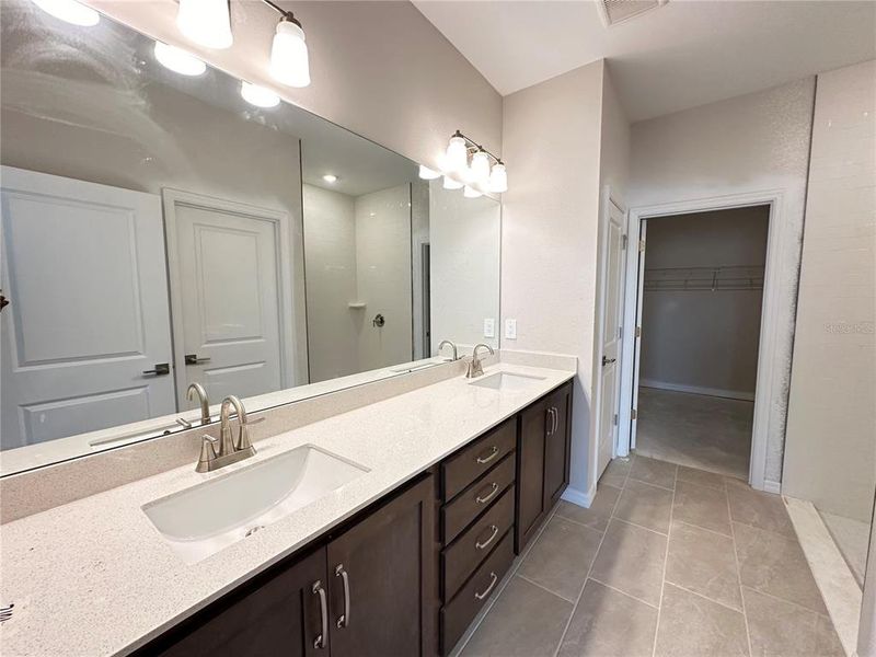 The private primary suite provides a peaceful retreat with dual vanities, an expansive walk-in closet, and the added comfort of an optional water closet for enhanced privacy. Two secondary bedrooms, each with its own walk-in closet, share a well-appointed full bath with a convenient linen closet for extra storage.