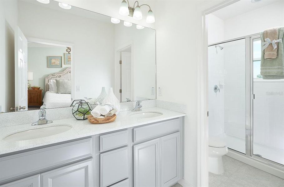 The Washington welcomes guests into a grand open-concept first floor. The large family room is ideal for entertaining or relaxing. The kitchen includes a large, functional island, and the adjacent dining room has views to a private patio through a sliding glass door. The second floor boasts a split floorplan with three bedrooms, perfect for privacy and functionality. The owner’s suite is a true retreat complimented by a grand walk-in closet and private bath with double sinks Two additional bedrooms with a full bath and a walk in laundry room completes this home.