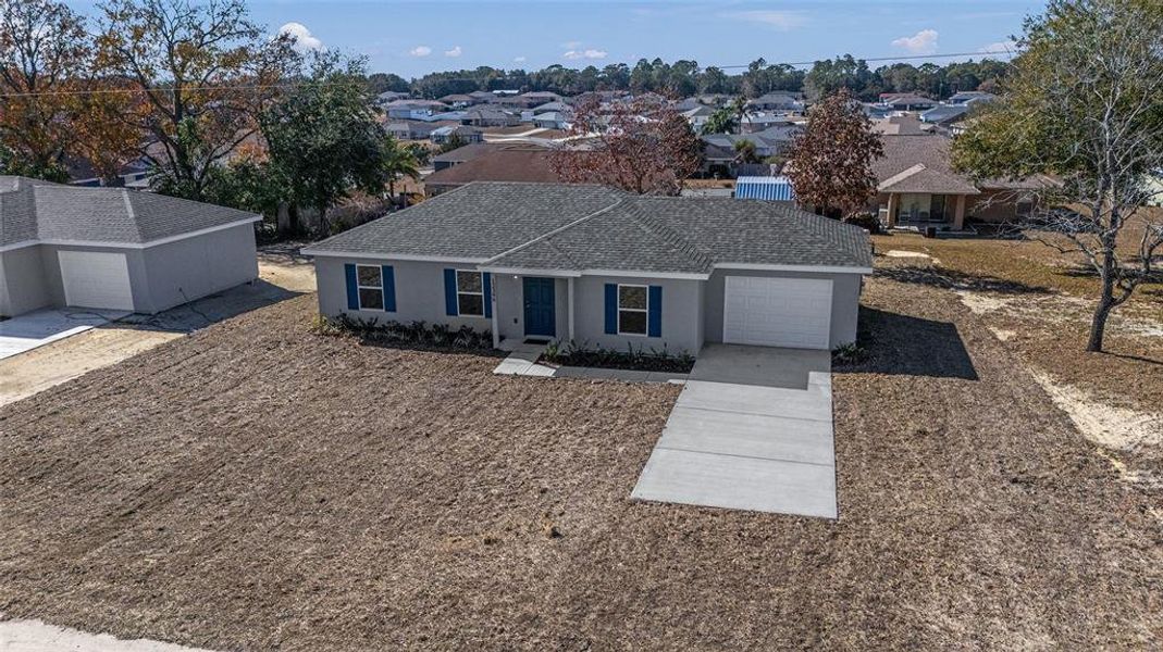 NEW, NEW, NEW! New Construction! New ENHANCED FLOOR PLAN! New REIMAGINED FEATURES! This home blends a timeless design with modern living. From the moment you walk through the front door you will feel the openness with the cathedral ceiling in the foyer, living room, and dining room! Durable ceramic tile flooring flows seamlessly throughout the home. The kitchen boasts stainless steel appliances, sleek quartz countertops, ample cabinetry, breakfast bar and a spacious pantry. Do laundry with ease in the air-conditioned laundry room. The bedrooms have all been expanded to maximize living space. An impressive, attached garage provides convenience and ample storage. This home rests on just under a 1/4 acre lot ~ enough room for the family & pets to play, but not too much yard work. A lovely family-oriented community just minutes from Lake Weir! Lake Weir Heights presents an opportunity for both value and style in Marion County with no HOA fees! This community is convenient to The Villages®, Belleview, and Ocala, making it a wonderful place to call home! Premium medical facilities, stellar shopping, and a plethora of restaurant options are within close proximity. Lake Weir offers an endless assortment of recreational opportunities including fishing, swimming, canoeing, and jet-skiing. Nearby Ocala National Forest has over 300,000 acres of wildlife to explore and offers numerous hiking trails and a range of camping options. Disney and Orlando are less than 1 ½ hours away. The Builder is including a 1-year full warranty and a 2-10 home warranty! Any dimensions listed are approximate. Photos/Virtual Tour are to show interior and exterior colors and finishes and may or may not be of this actual listing. Garage orientation and floor plan may vary for actual home.