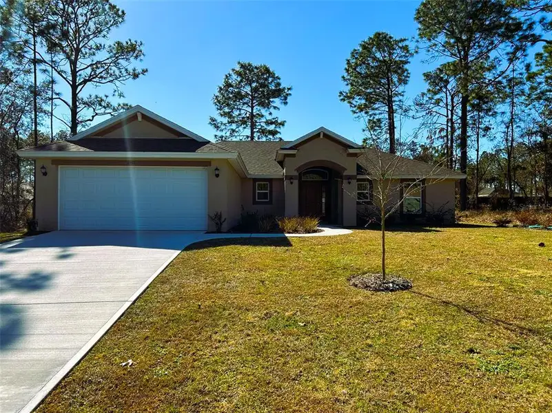Welcome! your brand-new home in beautiful Citrus Springs awaits, bringing you top tier craftsmanship with everyday comfort. Thoughtfully designed 3-bedroom 2-bath residence newly constructed by The Deltona Corporation. Inside and out this home offers stylish upgraded features and a layout that is perfect for today's lifestyle. As you enter, take in the tall ceilings and open floor plan that makes the most of every square foot. The vast open floorplan gives you a true open canvass to take advantage of, as it connects the main living area effortlessly to the kitchen and dining space, a ton of space for having friends and family over or just relaxing nights at home. The kitchen boasts a large island finished with beautiful granite countertops that extend throughout, soft close cabinets and sleek hardware, brought together by durable and easy to clean luxury vinyl floors. Natural Florida sunshine feeds in through the double-pane energy efficient windows and sliding glass rear door, which leads to the extra-large patio in the backyard. A wonderful spot to relax, fire up the grill, or just enjoy the sunshine. The owners suite is set apart from the guest rooms ideal for privacy with a large walk-in closet and double vanity sinks and tiled walk-in shower in the primary bathroom. Outside exterior of the home is just as impressive. Built with concrete block/stucco, underground utilities, pest control system, and a full irrigation system giving this property a truly clean look. Spacious 2-car garage with garage door opener and attic stairs already installed. Have peace of mind with our warranty program that gives you a 10-year structural and 1 year builders warranty. This home is perfectly positioned within a short drive to local rivers, springs, and parks. Not to mention shopping, dining, and new retail centers nearby. The kind of place that gives you room to breath without being too far from essentials. Looking for new-construction, built with quality in mind that's ready to go then stop right here. Don't hesitate, reach out and come and see this one for yourself!