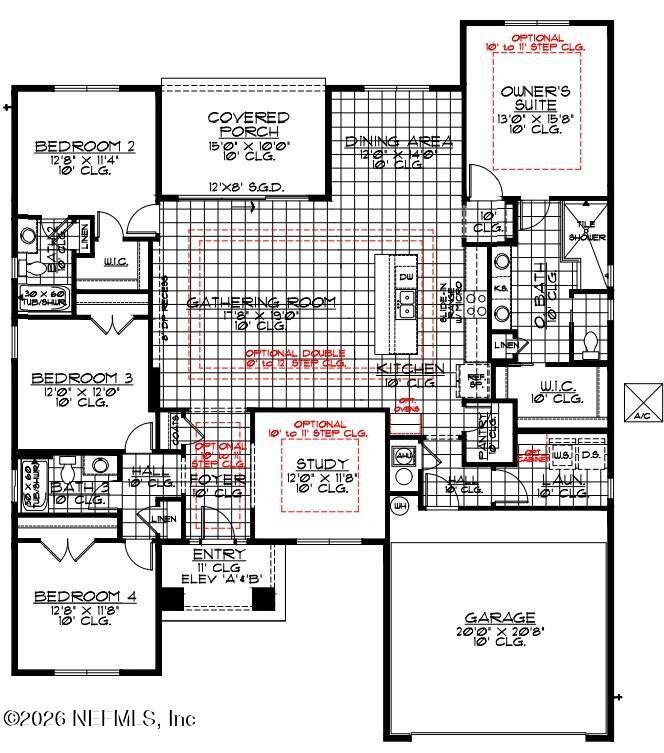 SEDA NEW HOMES: New construction! The Ridgecrest features 2,340 sq. ft. and has 4 bedrooms, 3 baths, and a study. This gorgeous open-concept plan has an abundance of natural light with the dining room, gathering room and kitchen area all open to each other. The kitchen features a large island and walk-in pantry. The covered lanai can be accessed through large sliding glass doors creating a great indoor/ outdoor entertaining space. The owner's bath has a luxurious walk-in shower, double vanities and a large walk-in closet. This rendering is a conceptual drawing only and is not meant to represent the actual exterior colors. Builder reserves the right to modify.