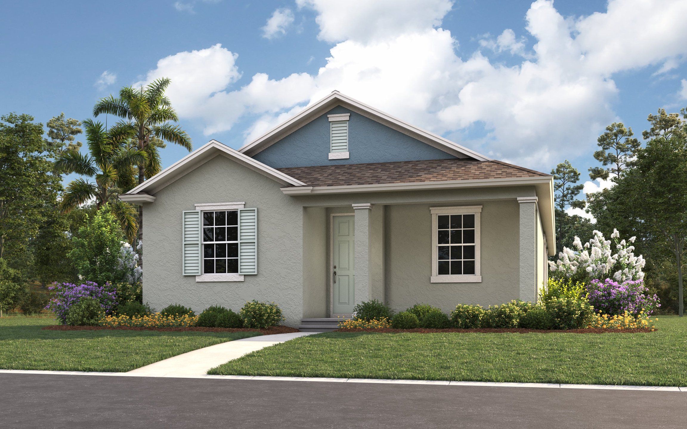 The Amelia floor plan offers the ease of one-story living with a smart and stylish layout featuring three bedrooms, two bathrooms, and a two-car garage. A spacious great room flows effortlessly into the dining and kitchen areas, making entertaining and everyday living a breeze. The private primary suite is tucked away with a large walk-in closet and a well-appointed bath. Two additional bedrooms and a full bath provide flexibility for guests, kids, or a home office. With thoughtful touches like a lanai, a dedicated laundry room, and a roomy garage, the Amelia delivers comfort and convenience in one beautifully designed space.