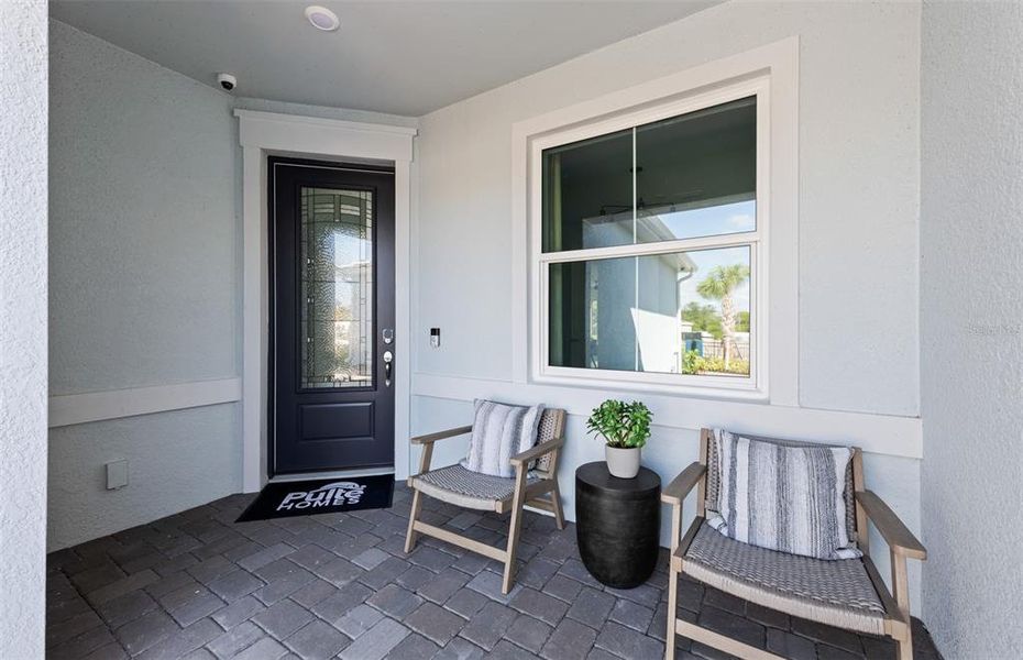 This Ellenwood Floorplan is an inviting attached villa offering 2 bedrooms, 2 bathrooms, open flex area and 2-car garage with water view from extended covered lanai. Designed for modern Florida living, the home features a spacious gathering room, screened brick-paver lanai, and 8' interior doors throughout. The kitchen is beautifully appointed Aristokraft cabinetry, Quartz Counters, and a full suite of stainless-steel KitchenAid appliances, including range and exterior-vented microwave. Additional upgrades include cabinets in laundry room, utility sink, whole-house impact-resistant windows, wood look porcelain tile flooring and an electric car outlet in the garage. With thoughtful details and finishes, this new construction home delivers comfort, style, and convenience. Discover new homes at Shores at Stillwater-by Pulte Homes, your ideal new home builder. Soak up the sun at the private community with miles of walking or biking to pristine beaches, shops and restaurants.