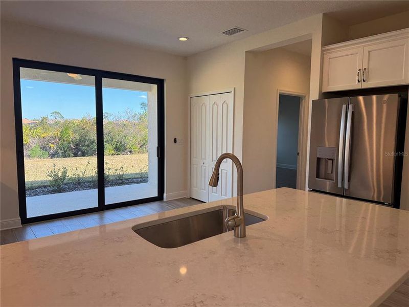 Some photos are virtually staged...MOVE-IN READY. Can close quickly. BEAUTIFUL, 3 Bedroom, 2 bath with double car garage. Exciting NEW GATED COMMUNITY, with wonderful community grounds, amenities and swimming pool. Over sized private lot with preserve views and lots of room between homes. This Gorgeous neighborhood is very quiet, with lots of community extras. Elegant home features new stylish design extra safe hurricane high impact windows and doors, quartz countertops throughout, upgraded stainless steel appliances, Foam insulation in exterior block walslls to keep utilities to a minimum.. Gourmet gas stove, making your cooking a breeze, kitchen under cabinet lighting! Natural Gas plumbed to lanai. Two car extended/oversized garage fitting the largest cars/SUV Trucks. Community features a beautiful swimming pool, plentiful number of pool chairs and tables, community meeting room , dog park, bocce ball courts and walking path. NO CDD FEE!!! Looking for a great home in a great community, you have found it.
