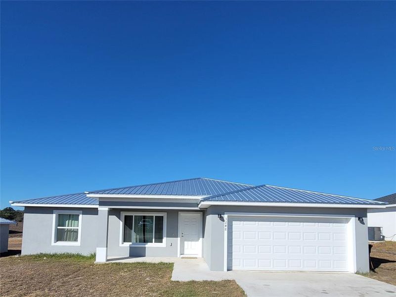 Welcome home to this 2025 well-built 3-bedroom, 2-bathroom block and stucco home featuring a durable metal roof and a desirable open floor plan. Designed for comfort and function, this home offers a split-bedroom layout, providing privacy for the primary suite while keeping guest or family rooms separate.