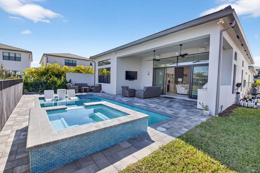 Built in 2024 and located in the prestigious Lotus Palm community of Boca Raton, this exceptional residence offers refined modern living with over $300K in high-end upgrades throughout. Upgraded cabinetry, a chimney-style hood vented to the exterior, premium GE appliances, including a 36'' gas cooktop, built-in ovens, and above- and under-cabinet lighting. A custom buffet and dry bar with wine refrigerator adds an additional layer of sophistication for hosting. Full Lutron automation, providing seamless control of lighting, shades, climate, garage doors, and integrated Sonos sound, pool and spa controlled with iAquaLink smart technology, upgraded paved driveway, Reverse Osmosis Water Treatment, and so much more.