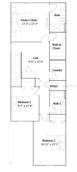 Past the foyer of this new two-story townhome is a gracious layout connecting the living and dining spaces. It features a well-equipped kitchen and its center island, followed by an intimate dining room and a sprawling family room made for gatherings. On the top floor is a central loft for versatile needs, along with two secondary bedrooms and a tranquil owner’s suite.