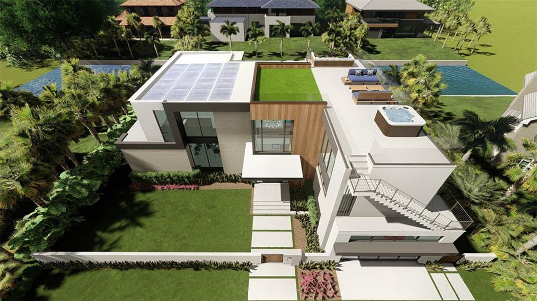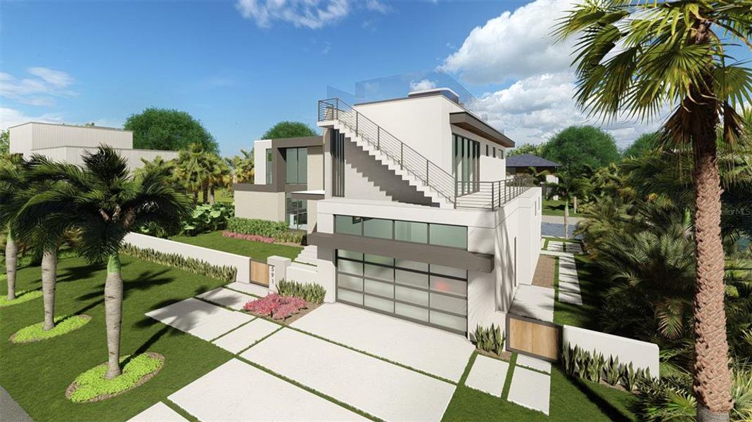 Wake up to shimmering views, spend your afternoons on the water, and end your evenings watching the Sarasota skyline glow from your private rooftop deck. This is the kind of home that defines the Longboat Key lifestyle. To be built by Brista Homes and designed by Mark Sultana of DSDG Architects, this stunning residence is set on one of the largest canal-front lots in Country Club Shores—approximately 1/3 acre—offering the rare advantage of a true backyard, something rarely found on smaller properties, along with community deeded beach access just moments away. This impressive coastal residence offers an exceptional combination of size, location, and boating access. Positioned just one lot from Sarasota Bay, the setting provides both canal frontage and quick, effortless access to open water. Inside, 4,452 square feet of thoughtfully designed living space spans five bedrooms, five full baths, and two half baths—perfectly suited for hosting family and friends or accommodating extended stays. Architectural highlights include a wine closet beneath the open staircase and a striking two-way fireplace that anchors the main living areas. Private outdoor balconies, complemented by and outdoor kitchen, extend the living space and invite seamless indoor-outdoor living. Two laundry rooms add everyday convenience, while the layout balances openness with privacy, creating a home that feels both grand and livable. This house shines equally outside. A waterfall visible from the front door flows seamlessly into an infinity-edge pool, two outdoor showers – one right outside the master suite, newer seawall, and dock invite spontaneous days on the bay, sunset cruises, and weekends spent exploring the water. Above it all, the rooftop deck steals the show, featuring a private putting green and offering sweeping views of Sarasota Bay and downtown Sarasota, and a front-row seat for sunsets, fireworks, and unforgettable evenings under the stars. Ideally located just minutes from the Longboat Key Club, with membership opportunities and a short drive to the boutiques and dining of St. Armands Circle and vibrant Downtown Sarasota, this home places you at the center of everything that makes Longboat Key so desirable.